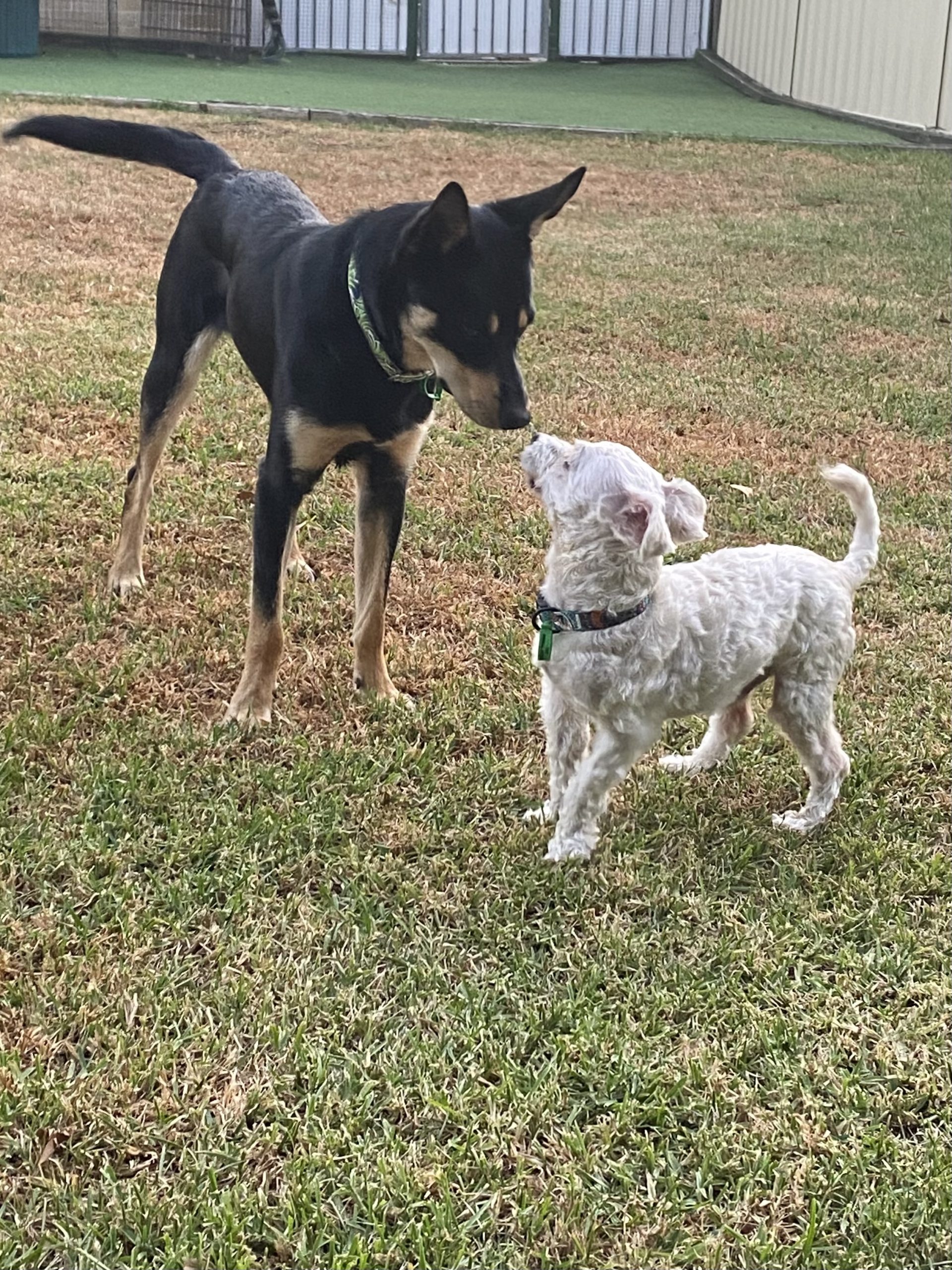 Mav is just adorable, he’s sweet natured, gentle, and super handsome. He walks beautifully on a lead and is not reactive at all meeting or seeing other dogs out and about. Maverick likes a car ride, he is a little timid with all things new at first but that doesn’t stop him from trying new things. He loves to meet new people and sidles up close for cuddles, he loves affection. Mav’s best mate is a 5kg Shitzu and the two of them together are forever on the go with Maverick herding his little ‘sheep’ around the yard. When they are not running together Mav is amusing himself with the various toys in the yard, he is a typical working dog with plenty of energy to burn and constantly on the go so a small property or larger yard will be needed and an active family to keep him busy will be essential. This great little man is not a barker at all and shows great potential for recall with training. He is untested with cats and unless they are super dog savvy I would suggest he’s not suitable. Mav is crate trained and loves his crate, he is happy to place himself there by choice. Don’t overlook Maverick if you have what he needs in a family, you won’t be disappointed